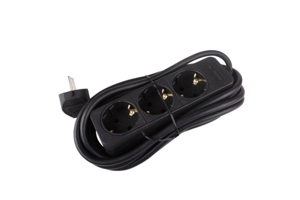 Tafeldoos 3V+RA zwart + 5,0m snoer 3x1,5mm2 langwerpig
