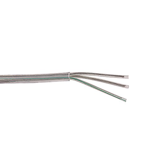 PVC kabel 3x1,5mm2 rond transparant per rol 100m PVC buitenmantel, PVC aderisolatie, aders zilverkleurig, 1 ader groen geel streepje(aarde), 2 aders transparant