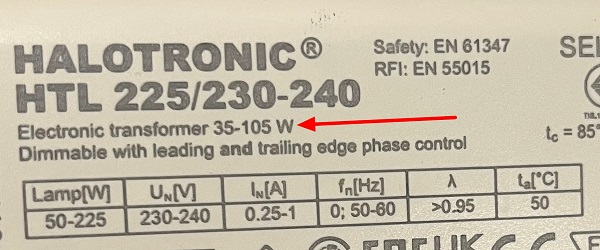 Osram HTL 225 230-240V elektronische halogeen transformator 12V 50-225W Let op soms staat er een tegenstrijdige opdruk van 35-105W op zie detailfoto