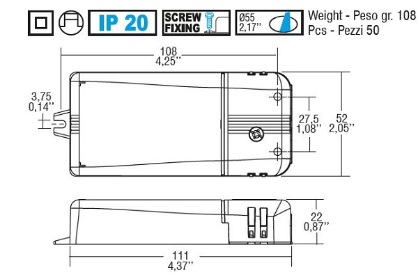 | Dimmable | 1-10V, Pushbutton, Potentiometer | ? Some lamps and ballasts are dimmable. There are different types of dimmers and different ways to dim a ballast or transformer. In case of insufficient knowledge, please check with our sales department. |