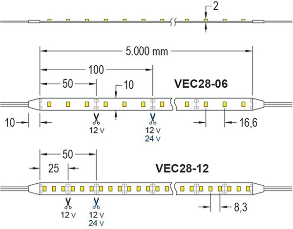 | To be shortened by | 100mm | ? As LED strips and rope lights have several LEDs or lamps connected in series, they cannot be shortened to any length. The number of mm by which the product can be shortened is specified here. |
