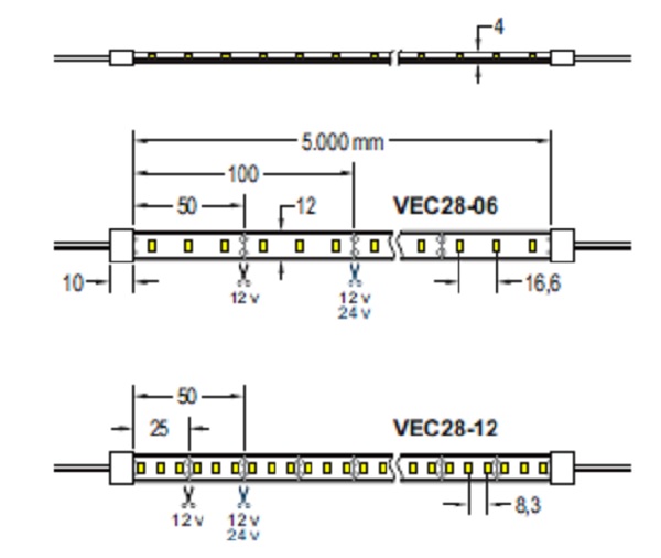 ELT 9955134 eLED VEC28-14-865-24V 70W 24V DC 865 6500K 5m rol flexibele LEDstrip met 3M plakstrip IP20 op aluminium strip plakken i.v.m. koeling