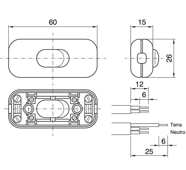 Arditi 008888 snoerschakelaar 2 polig 250V 2A maximaal 450W zwart Met bruggen (2 schroeven per brug), geschikt voor platte kabel HO3VVH2-F 2x0,75mm2, ronde kabel HO3VV-F 2x0,75mm2 en HO3VV-F 3x0,75mm2 (met extra kroonsteen 29103153)