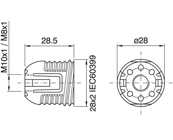 buitendraad 28x2 voor E14 schroefring, schroefdraad M10x1 zie accessoires voor lamphouder G9